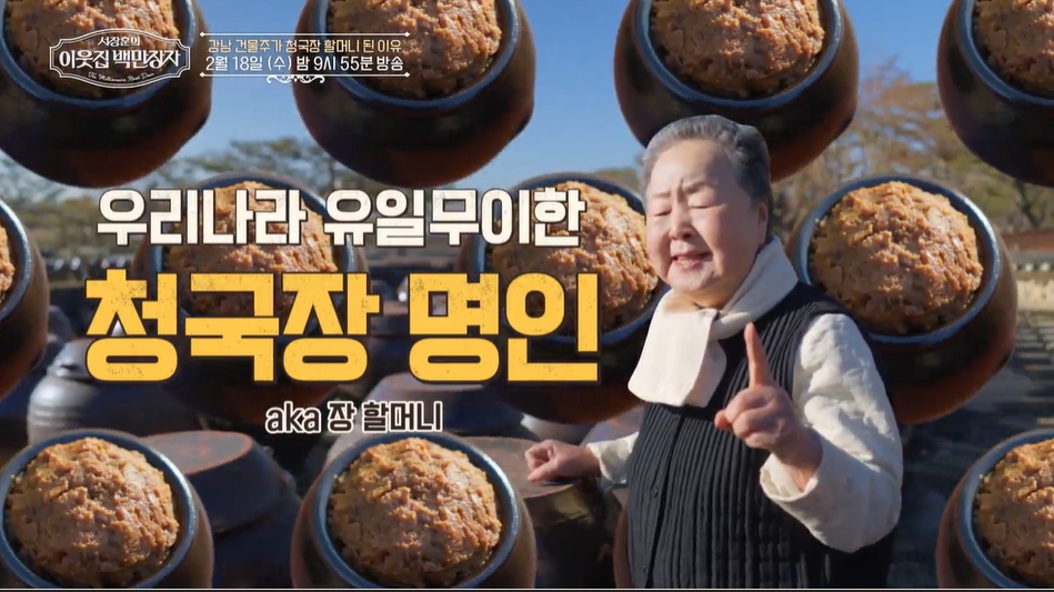 청국장으로 연 매출 100억 원을 달성한 서분례 명인의 삶이 방송을 통해 소개된다. 대한민국에서 단 한 명뿐인 청국장 분야 식품명인(제62호)이라는 타이틀을 가지고 있다.
