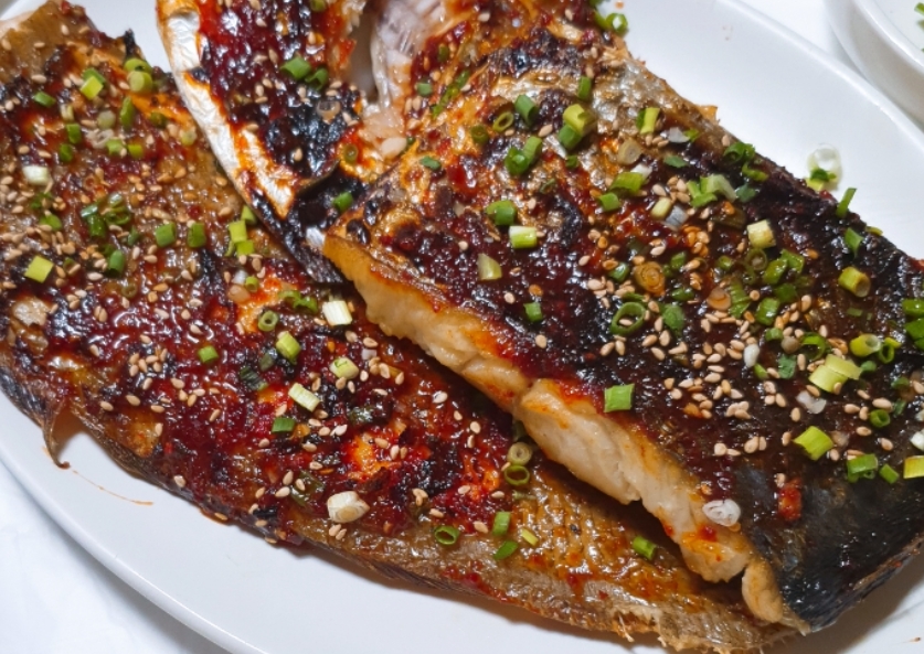 그럼에도 불구하고 손님들이 가장 많이 찾는 메뉴는 생선구이입니다. 숯불에 구워 불향이 가득한 생선 위에 사장님만의 비법 양념이 발라져 있어 매콤하면서도 짭조름한 맛을 동시에 느낄 수 있습니다.