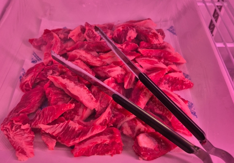 펜션 지하에는 실내 바베큐장이 마련돼 있어 날씨에 상관없이 바베큐 이용이 가능합니다. 바베큐 무한리필 패키지에는 생갈비, 부채살, 갈비살 등 여러 종류의 소고기 부위가 포함돼 있어 다양한 선택이 가능하며, 쌈채소와 기본 반찬, 양념류는 셀프바 형태로 제공돼 편리하게 이용할 수 있습니다.