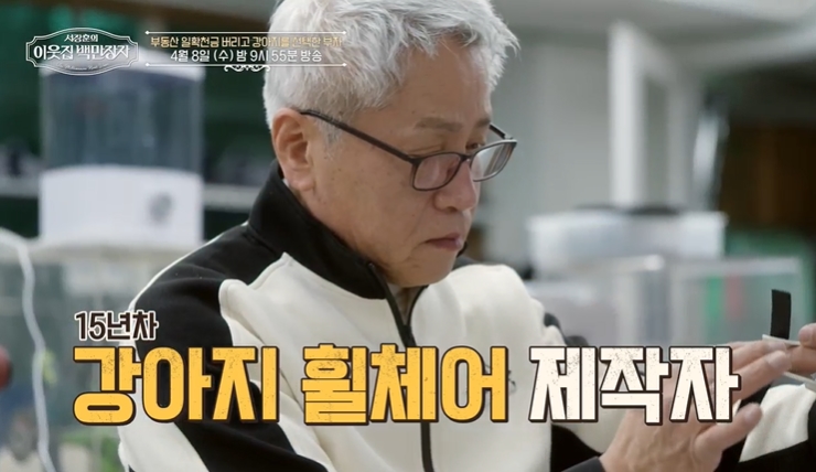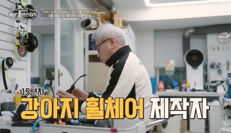 이웃집 백만장자에서는 반려동물의 삶을 근본적으로 바꾸는 일을 하는 휠체어 제작자 이철의 특별한 이야기를 소개한다. 15년 동안 강아지 보조기와 휠체어를 직접 제작해온 그는 단순히 기계를 만드는 사람을 넘어, 걷지 못하던 동물들에게 새로운 삶의 기회를 선물하는 역할을 하고 있다.