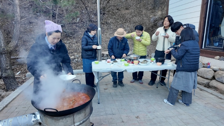 이 산채만두를 고추씨를 덖어 우려낸 맑고 칼칼한 육수에 넣어 끓인 전골은 추운 겨울에 더욱 빛을 발한다. 쫄깃한 만두와 얼큰한 국물이 어우러져 몸속까지 따뜻해지는 이 음식은 남편과 아들이 가장 좋아하는 겨울 보양식이다. 강한 추위 속에서 일상을 이어가는 가족에게 이 전골 한 냄비는 든든한 에너지원이 된다.