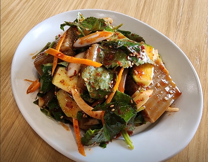 반찬 구성에서도 세심함이 느껴진다. 도토리묵무침은 새콤하면서도 고소한 맛이 살아 있어 수육과 잘 어울리고, 연근새우튀김은 바삭한 식감 덕분에 테이블 분위기를 자연스럽게 살려준다.
