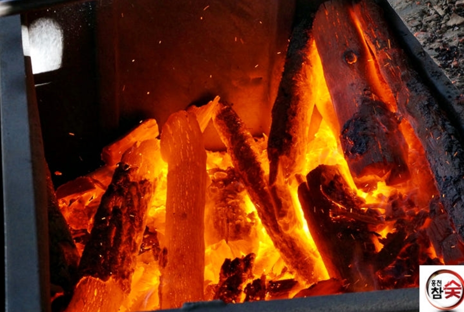 내부 온도는 1,000도를 훌쩍 넘고, 불의 세기가 조금만 달라져도 숯의 상태가 달라진다. 불길이 잦아들고 은빛 연기가 번지기 시작하면, 시뻘겋게 달아오른 숯을 삽으로 퍼내는 작업이 이어진다. 한겨울 찬 공기 속에서도 옷 속은 금세 땀으로 젖는다.