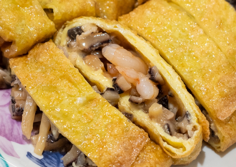 해물누룽지탕과 함께 이곳을 이야기할 때 빠지지 않는 메뉴가 바로 ‘자춘결’입니다. 달걀말이를 떠올리게 하는 이색적인 중식 요리로, 얇게 부친 달걀지단 안에 새우와 해삼, 표고버섯 등 다양한 재료를 넣어 돌돌 말아 튀겨낸 달걀 춘권입니다.