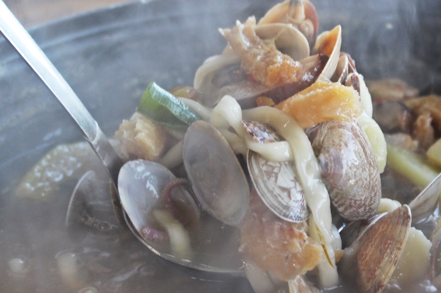 박선영·윤난식 부부는 이 거리를 대표하는 인물이다. 남편이 조업을 마치고 돌아오면 아내는 곧장 주방에서 칼국수 육수를 올린다. 황태 껍질과 꽃게를 넣어 깊게 우려낸 국물은 시원하면서도 담백하다.